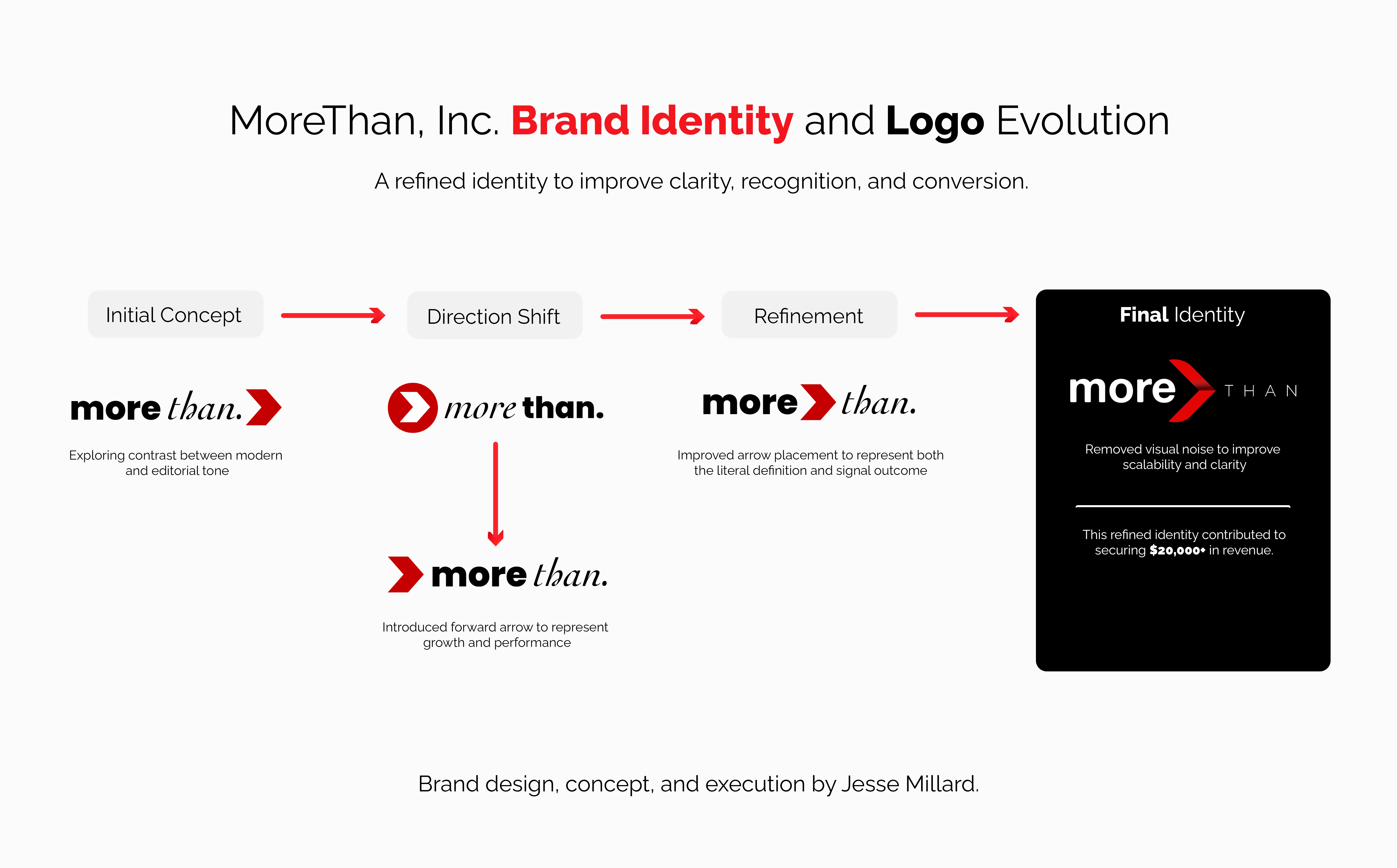 Refinement: This is when it all came together, by moving the greater-than symbol between the words “more” and “than” to really lean into the subconscious messaging of outcome. Paired with the bold “more” typography, the last step was to remove the period and italic text for “Than,” which now created too much of a clash.